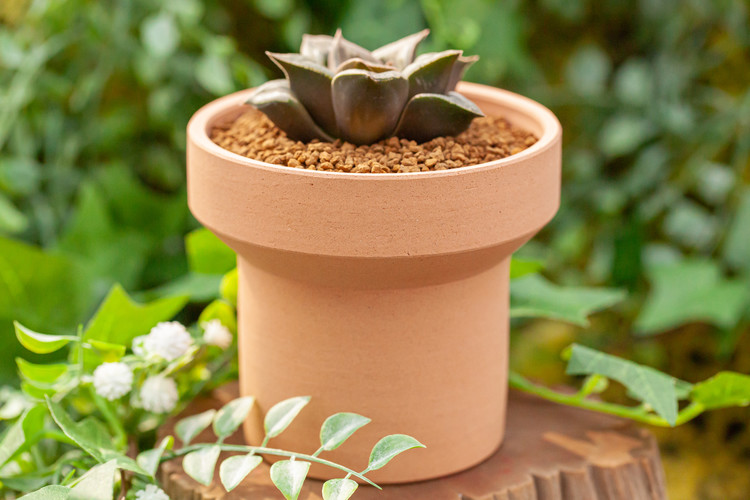화분 : 모던 컵 베이지팟 + 투명 받침 / 랜덤 미니 피규어
