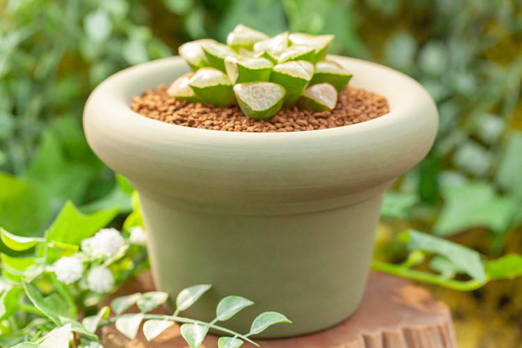 화분 : 올리브그린 베이글팟 + 투명 받침 / 랜덤 미니 피규어