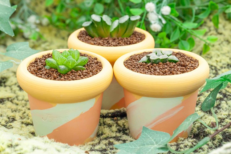 화분 : 블리스 선라이즈 베이글 스몰 x 3, 플라스틱 받침 x 3, 피규어 x 3