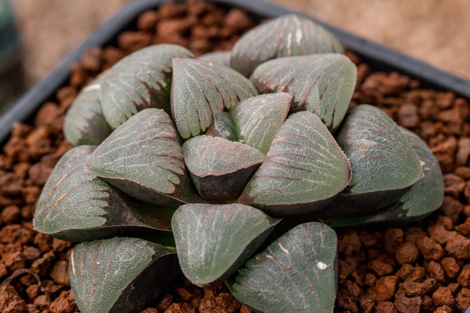 대형 달마 반구형창에, 매우 짙게 들어가는 자색선이 아름다운 품종입니다.